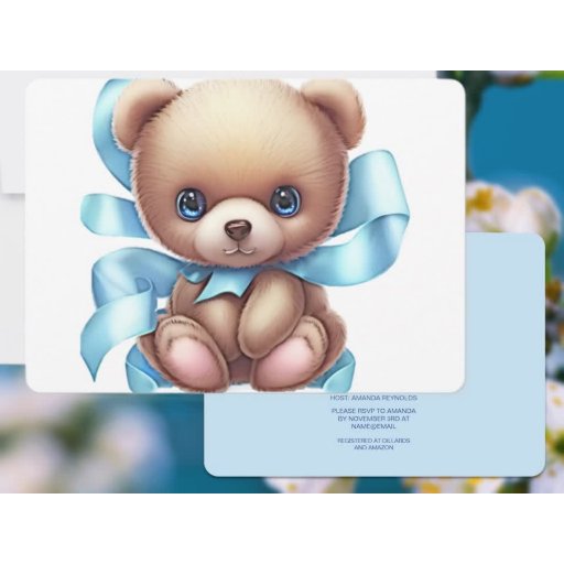 Hier ist eine besondere Art, die Geburt Ihres Babys anzukündigen. Senden Sie eine fesselnde Ankündigung an Familie und Freunde. Teddy Bear Blue Design auf der Vorderseite mit Ihrer besonderen Geburtsankündigung zusammen mit Ihrem Foto auf der Rückseite. Verwenden Sie die Vorlage zum Personalisieren.
