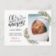 Kindergeburtskarte mit einem neuen geborenen Baby-Foto in der wunderschönen Gold & Aquarell-Blüte umgeben von elegantem handgeschriebenem Skript "Oh! Baby Es ist Neues Jahr"
