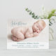 Celebrate the arrival of your newborn with this personalized birth announcement card featuring a baby photo and birth details.