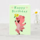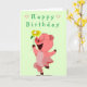 Baby Birthday Card Happy Piglet mit Blume Karte