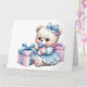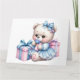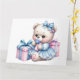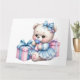 Baby Happy Birthday Card. Niedlicher Teddy Bär sitzend mit vielen verpackten Geschenken. Eine bezaubernde Kindergeburtenkarte. Diese Karte ist leer für Ihre eigene Nachricht. Auch als digitaler Download für den Transfer zu anderen Produkten verfügbar.