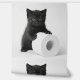 Baby Black Kitten Guarding Toilet Paper Roll On Tapete