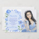 Baby Blue Floral Butterfells Foto Quinceañera Dankeskarte