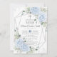 Baby Blue Floral Silver Baptism Christening Einladung
