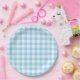 Ändern Sie die babyblaue Hintergrundfarbe hinter dem nahtlosen Gingham-Muster. Fügen Sie Text zur Personalisierung hinzu. Erstellen Sie Ihre eigenen Teller. Das traditionelle Gingham-Muster verleiht jedem Event eine Touch von Charme und Nostalgie. Diese Teller wären ideal für ein Wiedersehen-Picknick, Grillabende oder jede Ansammlung im Freien, wo eine lässige und fröhliche Atmosphäre gewünscht wird. Sie können auch in eine Vintage oder ländlich inspiriert Hochzeitsdusche oder Babydusche integriert werden.