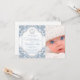 Prinztttaufen Einladung mit schöner Diamantenkrone und elegantem Drehbuch auf einem babylblau-weiß wirbelfarbenen Hintergrund. Diese elegante, blaue Taufpause lässt sich leicht an Ihre Veranstaltung anpassen, indem Sie einfach Ihre Foto- und Veranstaltungsdetails in den Schriftart-Stil, die Farbe und den Wortlaut Ihrer Wahl einfügen. Dies ist ein gedrucktes Design ohne echte Diamanten, Glitzer, etc.
