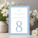 Custom Baby Blue Religious Cross Boy Baptism Table Number.