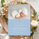 Baby Blue Religious Cross Boy Foto Taufe Einladung