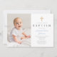 Baby Blue Script Cross Boy Foto Taufe Einladung