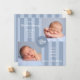 Custom Blue Striped Monogram Square Foto Geburtserklärung Ankündigung. Erleben Sie den Zauber der Ankunft Ihres Kleinen mit unseren wunderschön gestalteten Designs, die auf Ihren einzigartigen Stil abgestimmt sind. Diese rosa Geburtsankündigungskarte ist mit Liebe und Liebe zum Detail gestaltet - ideal, um die Neuigkeiten Ihres Freundesbündels mit Freunden und der Familie zu teilen. Geburtsankündigung, hellblau, Baby, Neugeborene, Fotos, Foto Collage, modern, traditionell, Monogramm