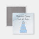 Hübsche Babyblau-Farbtöne auf diesem Hochzeitskuchen Akzent dieses eleganten Save the Date.