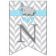 Baby Blue, White Gray Elephant Baby Sprinkle Wimpelkette