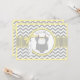 Chic, grau und weiß, Zickzack mit gelbem Kontrast und einem niedlichen Polka Dot Jumper mit Bogen-Krawatte und 3D-Look Bogen und Band für eine Babydusche Einladungskarte.