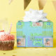 Machen Sie diesen dritten Geburtstag mit diesem lustigen Packpapier, das ein niedliches blaues und grünes Scrapbooking-Design bietet, besonders. Fügen Sie zwei niedliche Fotos für eine personalisierte Feier hinzu. Team mit dem passenden Band-, Tag- und Geschenktüten.