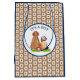 Braun und Blauer Junge Babydusche Geschenktasche mit einem kleinen Jungen, der neben einem Hund mit Baseballthema sitzt.
