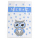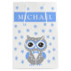 Baby Boy Baby Dusche Niedlich Owl Geschenktasche. Blaue und graue kleine Babyeule mit einem Marineblas und einer Bogen-Krawatte, blauen Schneeflocken. Individuelle Name auf einem blauen Band. Niedlich und hübsch, geeignet für Babydusche oder für andere Anlässe, die mit einem Baby in Verbindung stehen.