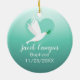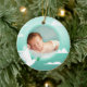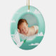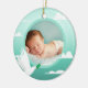 Capture the precious moments of your baby boy's baptism with this lovely mint green photo frame ornament. The design incorporates a serene sky with playful clouds and a delicate white dove, a classic symbol of peace and purity. This round ceramic ornament is expertly crafted to showcase a favorite photo, preserving the memory of this important religious event. The soothing mint green color and the heartwarming imagery make it an ideal gift for baptisms, christenings, or any celebration of new life. It's a beautiful way to cherish and display a treasured photograph.
