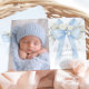 Baby Boy Baptism Photo Floral Eucalyptus Bow Invitation