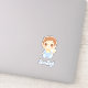 Niedlicher Cartoon in einem blauen Springanzug gekleidet mit einem gelben Bib mit einem Baby Rattle.