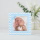 Diese Geburtsankündigung ist ein Teddybär, der mit Zickzack, blauen und weißen Streifen thematisch gestaltet ist. Fügen Sie einfach das Foto Ihres Babys in den personalisierten Bereich ein. Dann ändern Sie auf der Rückseite den gesamten Text zu den Informationen Ihres Babys: Name, Elternnamen, Geburtsgewicht, Länge.