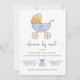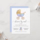 Baby Boy Dusche per Mail Retro Carriage Blue Gold Einladung