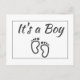 Einladung Postkarte zu feiern die Geburt eines Sohnes. Stilvolles modernes minimalistisches Schwarz-Weiß-Design mit niedlichem Fußbild. In unserem Shop sind weitere Artikel in diesem Stil erhältlich. Sie können das Design weiter bearbeiten, die Hintergrundfarbe ändern, Schriftart hinzufügen und durch Klicken auf den Link "Weiter" den Text anpassen.