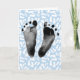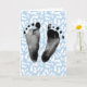 Neue Babyspuren auf weißem Fußabdruck auf blau