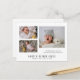 Eine moderne niedliche Baby Foto Foto Collage Geburt Ankündigung Postkarte zu senden an Ihre Freunde und Familie. Eine Collage von 3 bezaubernden Fotos mit Babynamen. Sie müssen dieses Foto durch ein Foto Ihres Neugeborenen durch ein landschaftliches Foto ersetzen, das am besten im Raum funktioniert. Fügen Sie Ihre Namen hinzu.