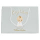 Taufe Baby Boy Dieses schöne und süße Baby ist perfekt für die Taufe Ihres Kindes. Das Design besteht aus einem süßen Baby mit einem weißen Springanzug, weißes Biker mit einem goldenen Kreuz. Die Hintergrundfarbe ist ein zartes Pulverblau. Karo die passenden Accessoires, Geschenke, Gastgeschenken und Schreibwaren.