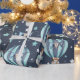 Niedliche Heißluftballons mit bärenblauer Babydusche Geschenkpapier für ein neues Babygeschenk oder Babydusche.