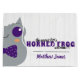 Kennt einen kleinen Jungen unterwegs? Soll ich ein Frosch sein? Dieses niedliche Design wird lila mit einem bezaubernden kleinen Jungen gehornter Frosch gemacht - komplett mit Schlips. Grosser Frosch auf der Vorderseite mit einem Platz für seinen Namen mit einem sich wiederholenden Muster des Frosches auf der Rückseite.