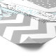 Chic Zickzack Druck mit babyblauen Kontrast; Polka Dot Jumper mit Bogen-Krawatte und 3D-Look Band und Bugboy Babydusche Banner.