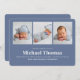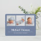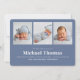 Herzlich willkommen bei Ihrem kleinen Jungen mit dieser Baby-Ankündigungskarte, die ein sauberes und modernes Collage-Design mit mehreren Fotos bietet. Diese Karte mit einem einfachen, aber feinen marineblauen Blau-Weiß-Farbschema präsentiert minimalistische Typografie und zeitgenössische Linien, die perfekt sind, um die Details von Neugeborenen auf frische, polierte Weise zu teilen. Diese Karte eignet sich ideal für die Darstellung von Babystatistiken und Lieblingssendungen. Sie verleiht den Geburtsankündigungen einen zeitlosen, unterschwelligen Charme. Feiern Sie Ihre neue Ankunft mit diesem leicht schicken, Baby-Fotografie-inspiriert Design.