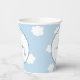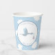 Feiern Sie die Ankunft Ihres kleinen Mannes an Ihrer Babydusche mit dieser individuell gestaltbaren Papiertasse mit einem niedlichen wolkenverzierten blauen Himmelshintergrund mit einem Storch, der ein Herz trägt.
