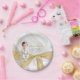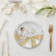 Wunderschöner Anzug auf weißem Satin-Hintergrund mit Goldband.