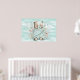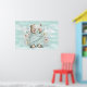 Das niedliche Poster für das Zimmer eines kleinen Jungen. Ein niedlicher Teddybär, umhüllt von einer Decke, umgeben von Blume. Auf einem hellgrünen bewölkten Himmelshintergrund.