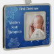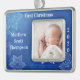 Baby Boy's erstes Weihnachts-Foto Jahr Blau Rahmen-Ornament Silber