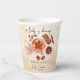 Ein Baby braut Herbstbrause Babydusche personalisierte mit Monogramm Papiertücher Vorlage, Wasserfarbe heiße Schokolade Kaffee Zimt Gewürze Kekse Ahorn Blätter, braune Hintergrund für Herbst Herbst Herbst Babydusche personalisierte Geschirr maßgeschneiderte Papiertassen.