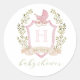 Baby Carriage Crest Monogram | Pink Baby Shower Runder Aufkleber