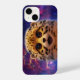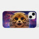 Eine fantasievolle Illustration eines niedlichen, flauschigen Baby-Geparden-Tubes gegen einen magischen kosmischen Himmel.
