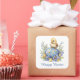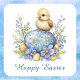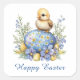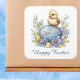 Baby Chick Happy Easter Egg Blue Yellow Flowers Quadratischer Aufkleber