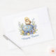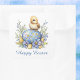 This cute Happy Easter sticker features a cute yellow baby chick perched atop a decorated blue and yellow Easter egg. Spring flowers and ferns surround the egg, with Happy Easter printed in a script font below. This sticker is great for gift giving, a special event, an Easter egg hunt, favor bags, cards, and more.