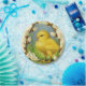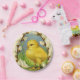 Teller, die im Frühjahr ein Baby-Küken zeigen, umgeben von Pussy-Weiden.