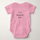 Ein rosa Babyanzug mit einem "Baby Girl" kommt bald, Babyfüße und schätzen das Lieferdatum auf der Rückseite. Dies ist ein Babybodyanzug, der auf der Rückseite personalisiert werden kann > diese Option löschen, wenn er nicht verwendet wird.