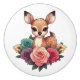 Eine bezaubernde Illustration mit einem niedlichen Hirsch, umgeben von blühenden Rose verschiedener Farben, in der die lebhaften Details der Blume und die charmanten Merkmale der Fauna hervorgehoben werden.