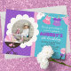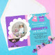 Baby Puppe Geburtstag 1 Foto Party Einladungen. Perfektes Party für den kleinen Puppenliebhaber! Einfach zu personalisieren. Wählen Sie Ihr Lieblingsbild des Geburtstagskindes aus und fügen Sie Informationen in Ihr Party ein. Bestellen Sie mit Briefumschlägen in einer Vielzahl von Papiersorten oder wählen Sie für einen hochauflösenden digitalen Download zum Versenden oder Drucken von Zuhause. Teil unserer Geburtstagskollektion mit lila, rosa und karibisch-aquamarinen Blautönen.