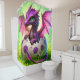 Dieser Duschvorhang hat einen Babydrachen darauf.