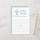 Baby Dusche Drehbuch moderne natürliche blauen Spaß Bingo Gastgeschenk Spiele Dekor Design. Blauer Heißluftballon elegante Babu Dusche Kollektion.