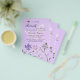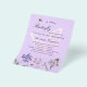 Bitte beachten Sie, dass diese Einladung auf Flyer Papier und sehr dünn ist. Umschläge sind nicht enthalten. Für dickere Einladungen (gleiche Gestaltung) besuchen Sie bitte unseren Shop. Ein violetter, lavenderfarbener Hintergrund. Mit einem großen Schmetterling dekoriert, beeren Bienen und bemalten Wildblumen in Violett und Rosa. Personalisieren und fügen Sie einen Namen und Party-Details hinzu.