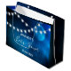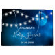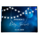 Eine Geschenktasche für eine Babydusche. Ein romantischer dunkel-blauer Abend und eine Nacht mit Vollmond und glänzenden, hellen Saiten. Weiße Briefe und Vorlagen für den Namen der Mutter, und ein Datum. Der Text: Baby Shower ist mit einem modernen, weißen Handschrift im Stil geschrieben. Geschlechtsneutral, sowohl für einen kleinen Jungen als auch für ein kleines Mädchen.